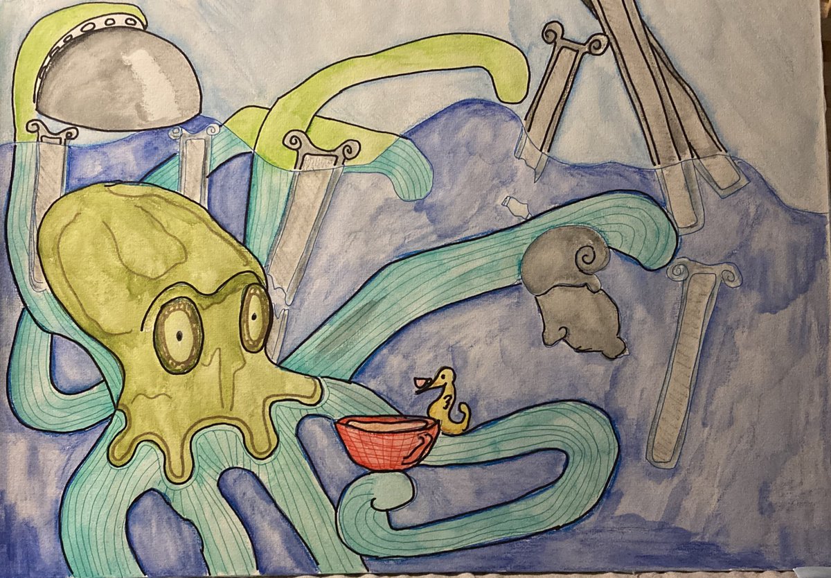 Kraken dricker te med en sjöhäst medan Atlantis går under